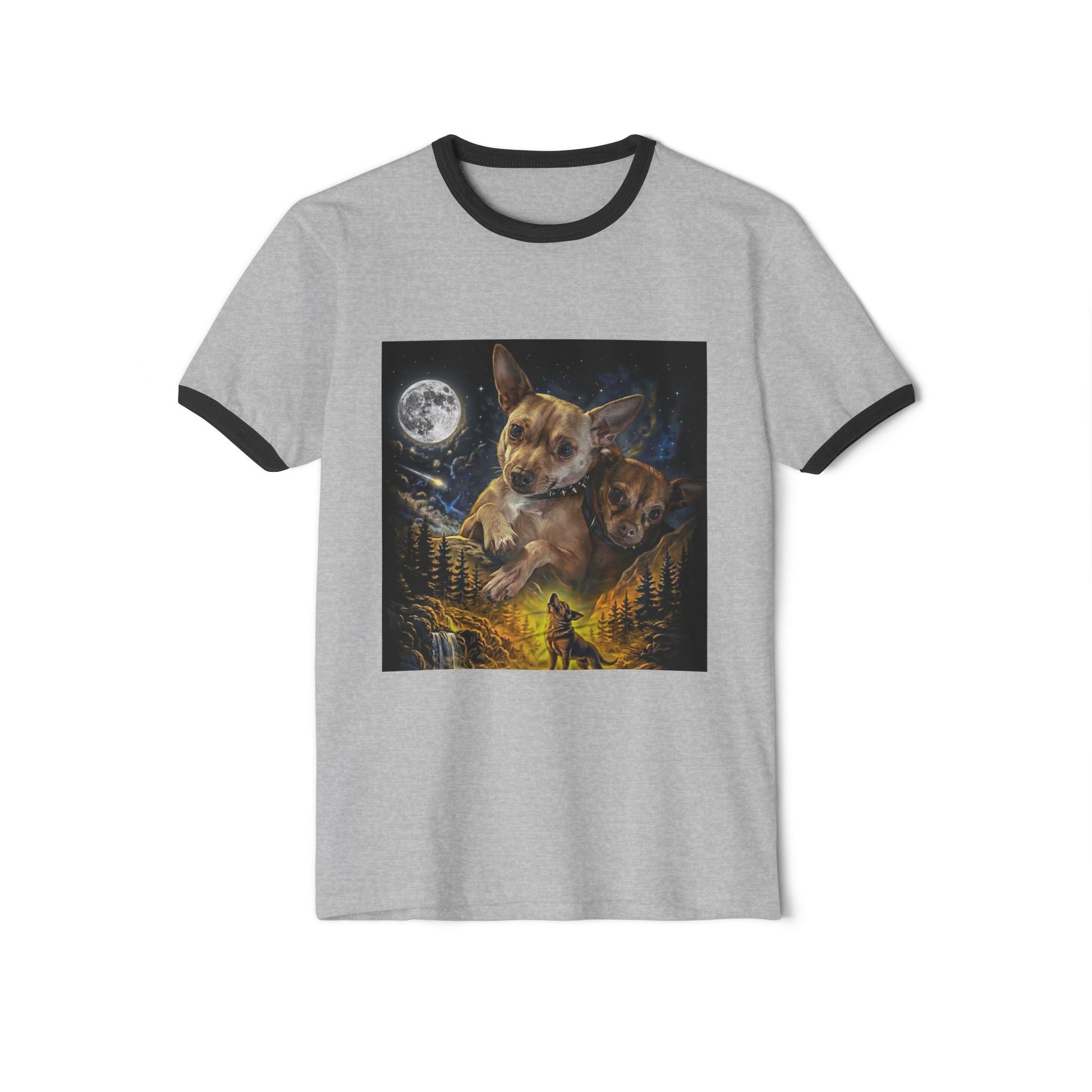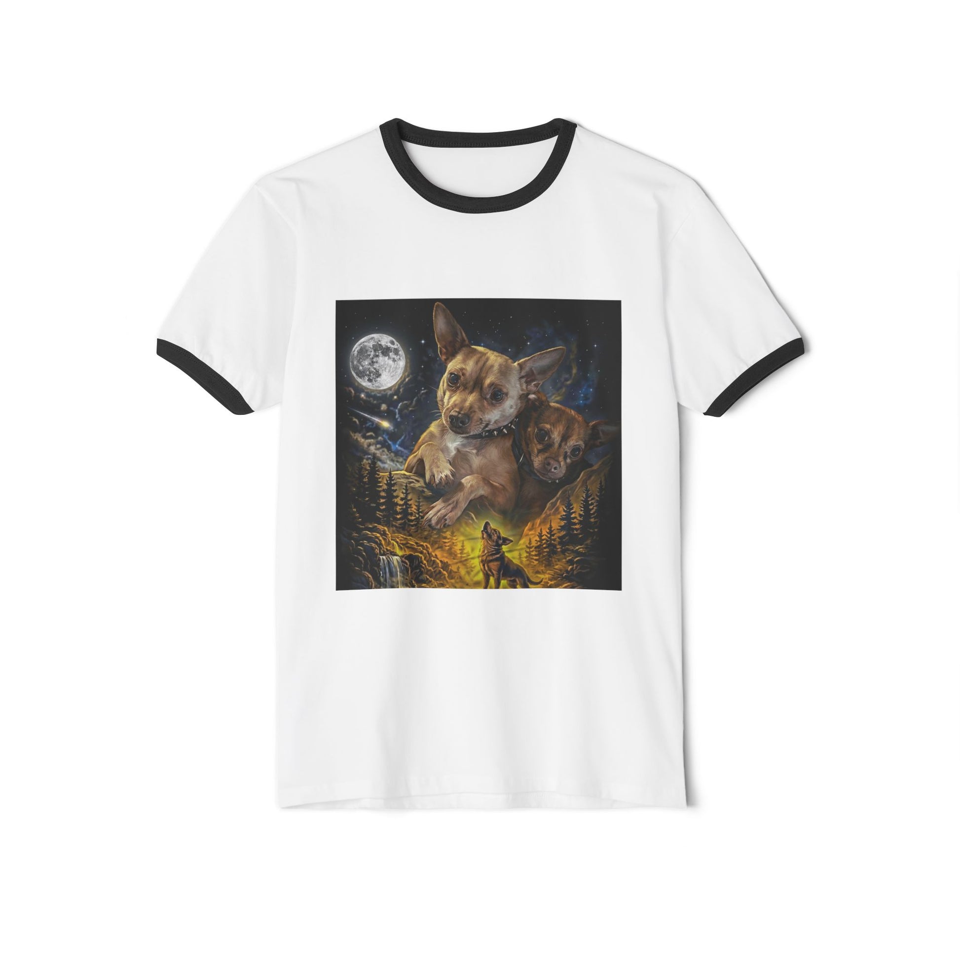 Chihuahua Moon Ringer T-Shirt — Night Forest Wildlife Graphic Tee